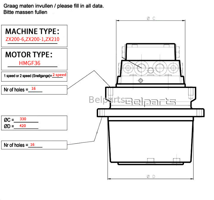 Graafwerktuig ZX210 ZAX210 ZAXIS210 9233687 9170996 9195447 definitieve aandrijvingsassemblage